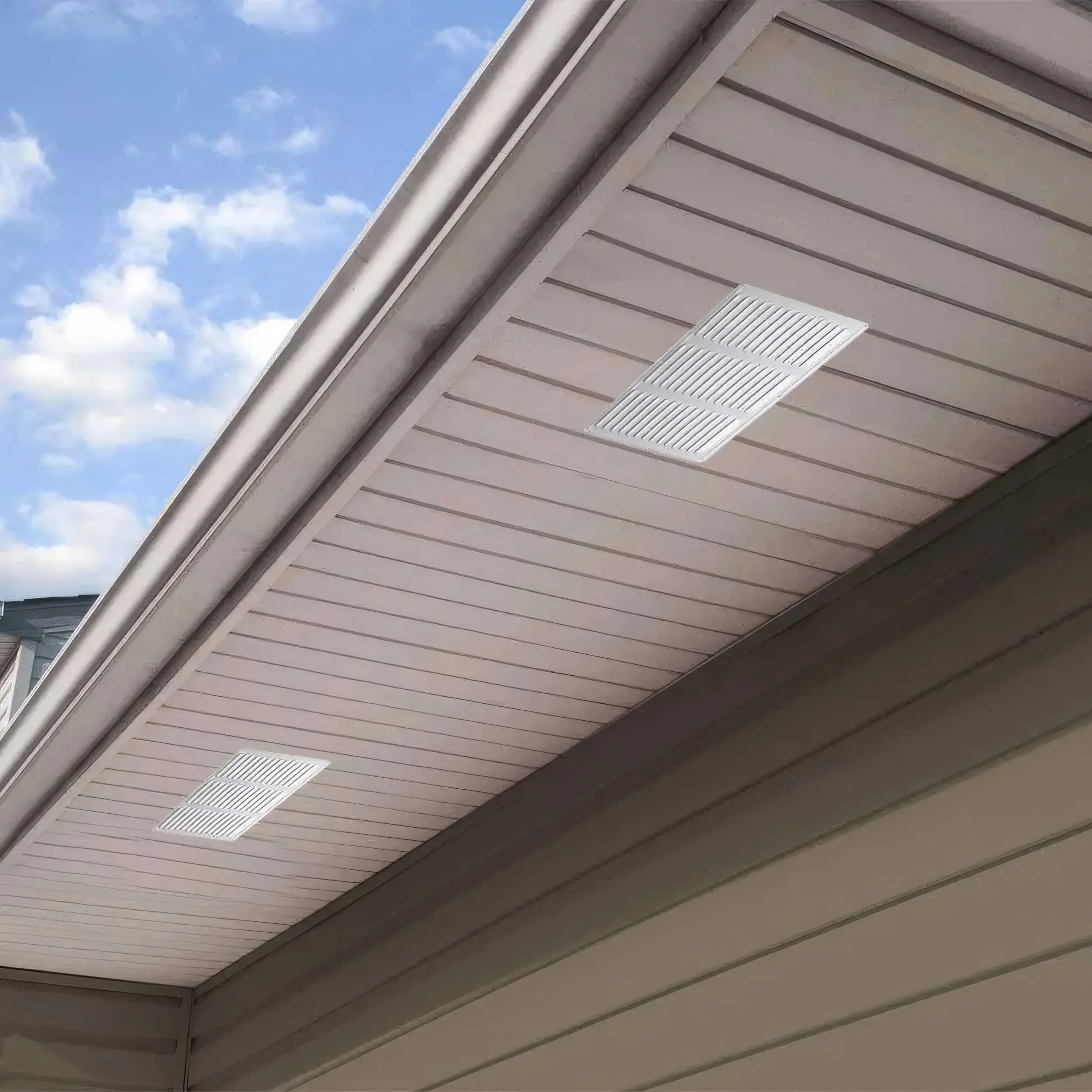 Soffit panels cover the underside of your roof overhangs and help ventilate the attic. Fascia boards run along the roof edge and provide a solid surface for gutters to attach. Together, they protect your home from moisture and improve the overall finish of your roof and siding